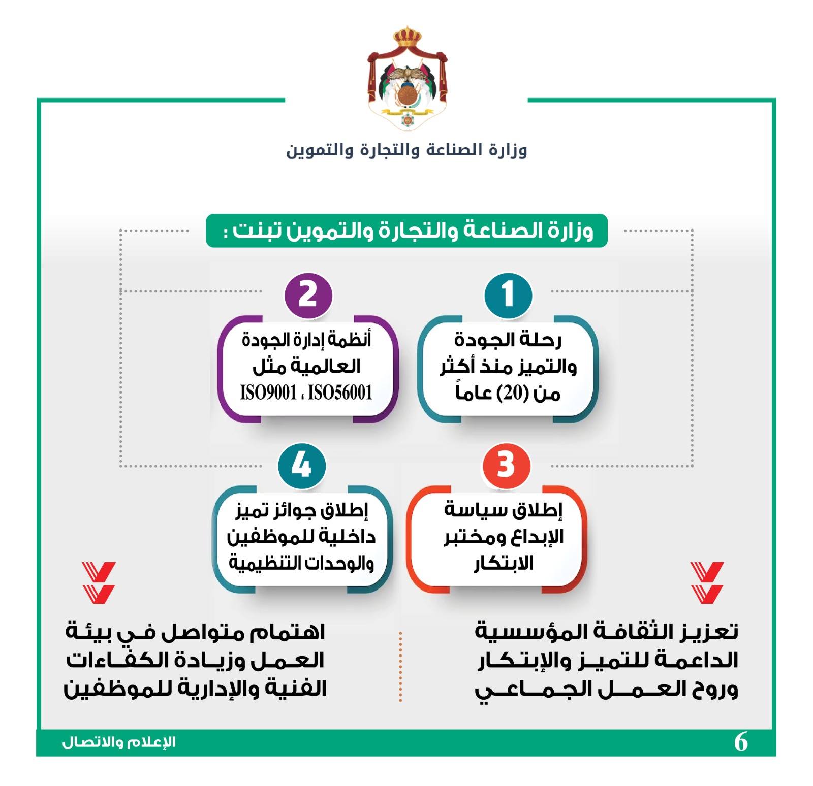 وزارة الصناعة والتجارة والتموين تؤكد استمرارها بالتعاطي الفعال مع مساري الإصلاح الاقتصادي والإداري لتعزيز الأداء والارتقاء بالخدمات وتعزيز الجهود المبذولة لتطوير الاقتصاد الوطني وترجمة رؤى وتوجيهات جلالة الملك والالتزام بمستهدفات رؤية التحديث الاقتصادي